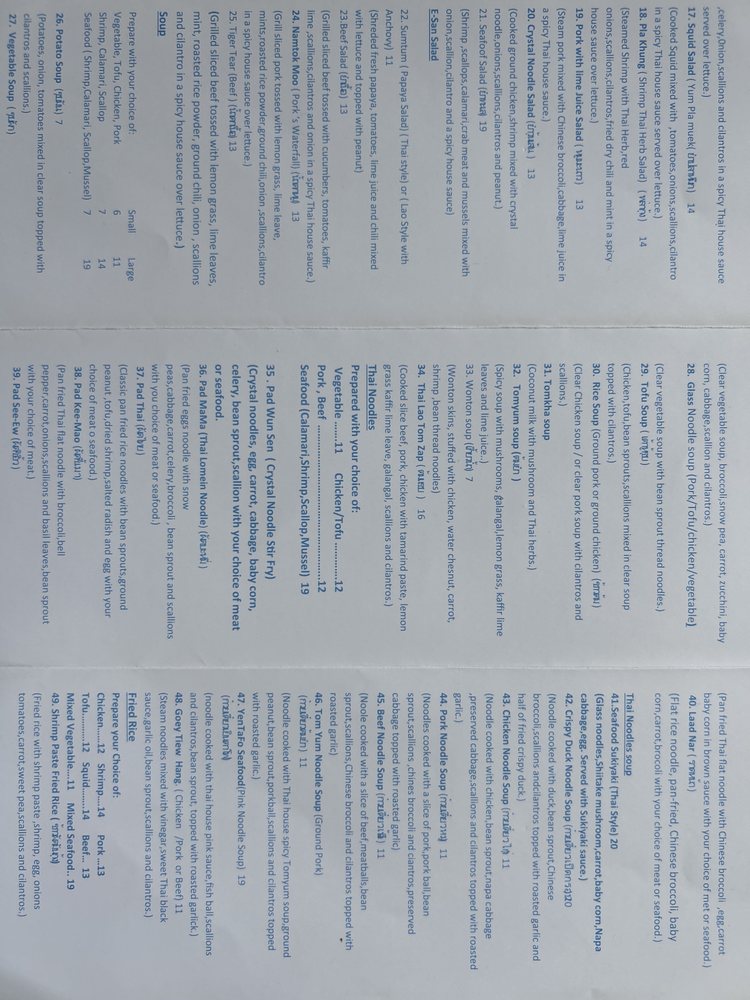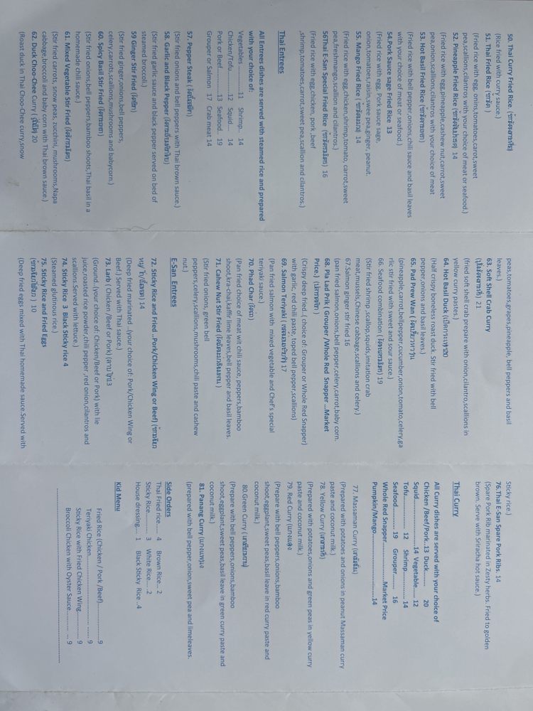 Thai E-San Restaurant Menu