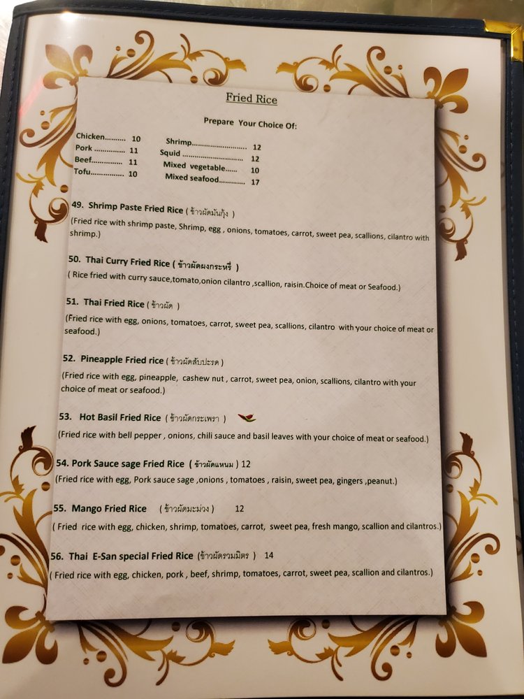 Welcome to Thai E-San Restaurant, a culinary gem located in the heart of Myrtle Beach. This inviting eatery offers a delightful blend of traditional Thai flavors with an emphasis on fresh, quality ingredients. Known for its vibrant atmosphere and casual dining experience, you can savor a variety of options from the exquisite Fried Rice selections, including the Shrimp Paste Fried Rice and Thai Curry Fried Rice, to the comforting bowls of noodle soup, such as the Seafood Suklyakl Soup and Crispy Duck Noodle Soup.